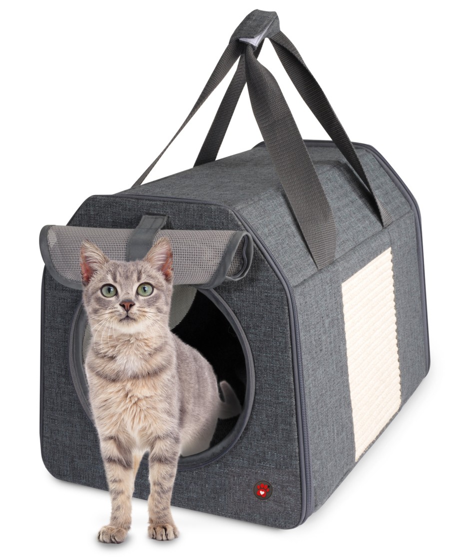 Una borsa trasportino che è anche un tiragraffi: questo prodotto è una soluzione pratica e multifunzionale per portare con te il tuo felino ma è utilizzabile pure come comoda ed elegante cuccia e come utile passatempo grazie al tiragraffi in sisal: il tuo felino si sentirà sempre a casa!