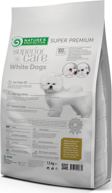 Un alimento completo di alta qualità per cani adulti di taglia piccola e mini, appositamente formulato per migliorare la bellezza del manto bianco.
